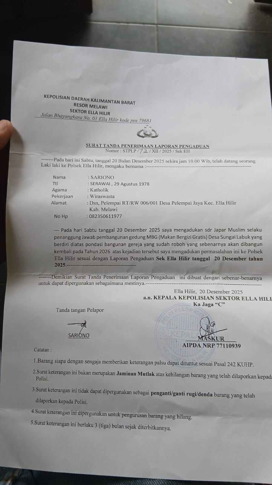 “Pondasi gereja yang sudah lama disiapkan kini tertutup bangunan MBG. Ini sangat merugikan kami,” lanjut Sariono.